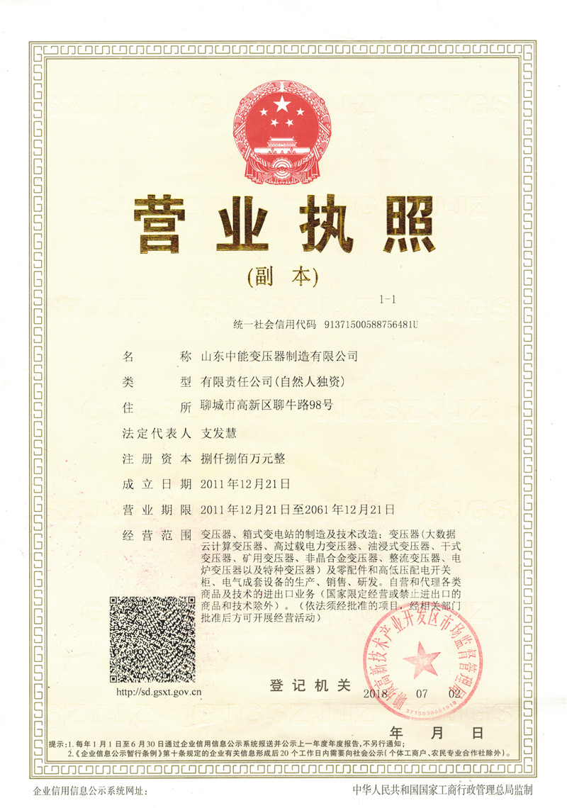 荣誉资质_临沧中能变压器厂家